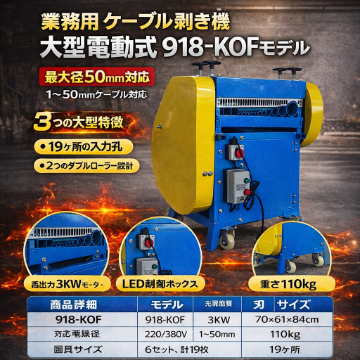 11 3月 未分類 918-KOF 電線皮むき機 電動ケーブルストリッパー 1〜50mm対応 3KW 高効率 電線剥離機 銅線リサイクル用 hakusenki.jp 0 メタディスクリプション 918-KOF電線皮むき機は、1〜5… Read more